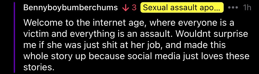 This user came into a post about a doordasher posting that they had gotten punished by the company after complaining of sexual assault. Bennyboy posted to the effect of “everything is assault these days” and went on to assert that the woman in question was “probably shit her job and made it all up”. They are quite literally a “nice guy” if their flipping out didn’t make that apparent already.