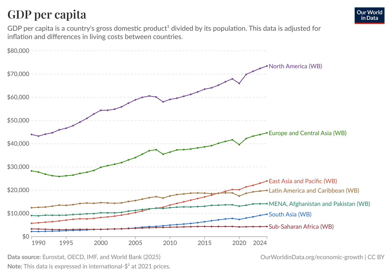 It’s true that India was one of the fastest countries to rise(, compared to Latin America, Africa, or the Middle-East)(, the data is PPP-adjusted, and yes, i know that the g.d.p. has too many problems to be considered a good indicator, however i don’t know of a better alternative on OurWorldInData or elsewhere, source) :